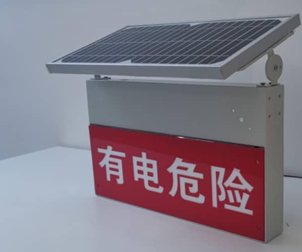 智能高压电子警示装置集合了文字警示和电子警示,设备主要由警示牌、太阳能电池板、喇叭、红外传感装置、RFID智能巡检单元以及集成控制电路组成,警示牌显示“有电危险”四个大字,通过闪光灯条配合导光材料,夜间警示闪烁,提醒靠近的人、车需要确保一定距离;另外,设备红外感应模块能够自动检测人、车靠近,并进行声、光提醒。红外人体感应模块未动作时,可以设置时间间隔、定时播放语音提示。